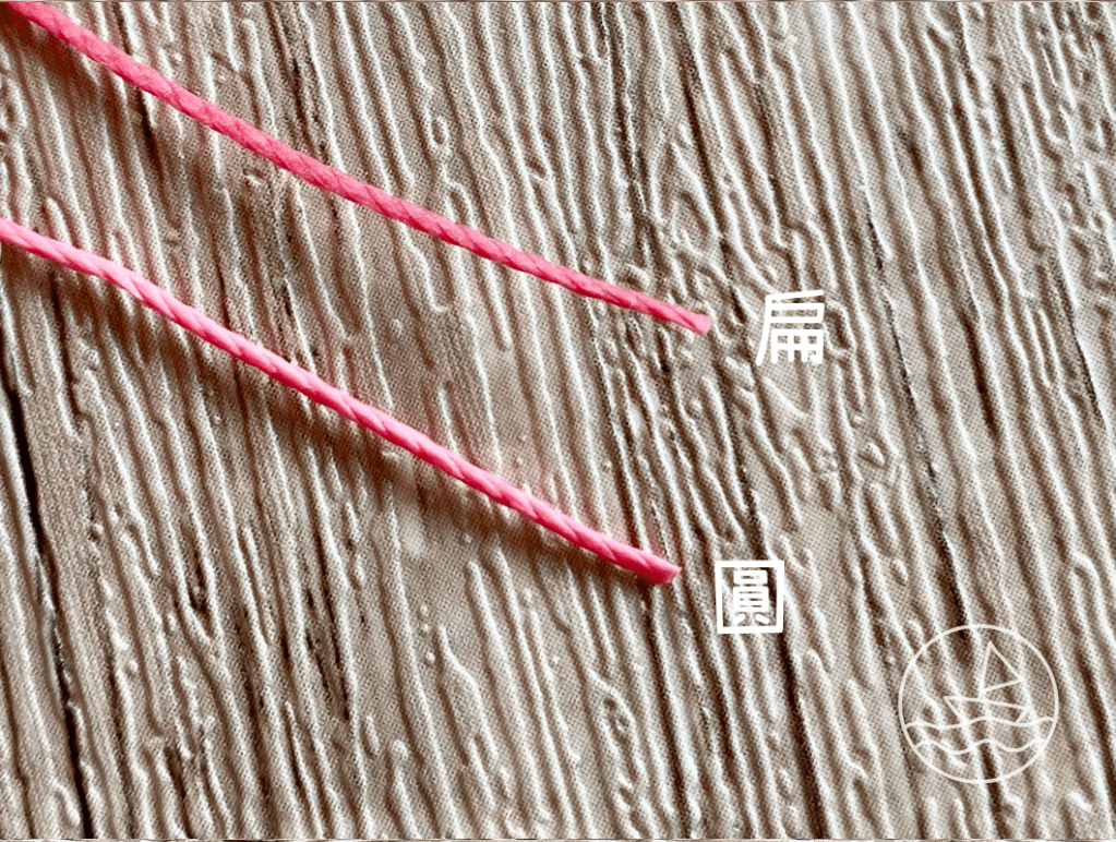 顧名思義,三股線扭成一股後,維持原本的形狀,是為圓線。