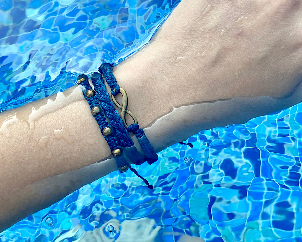 而且線的強度很好,不會越戴越鬆,即使在高強度運動(例如衝浪)時配戴,也不會有問題,難怪常被用來製作衝浪手環。