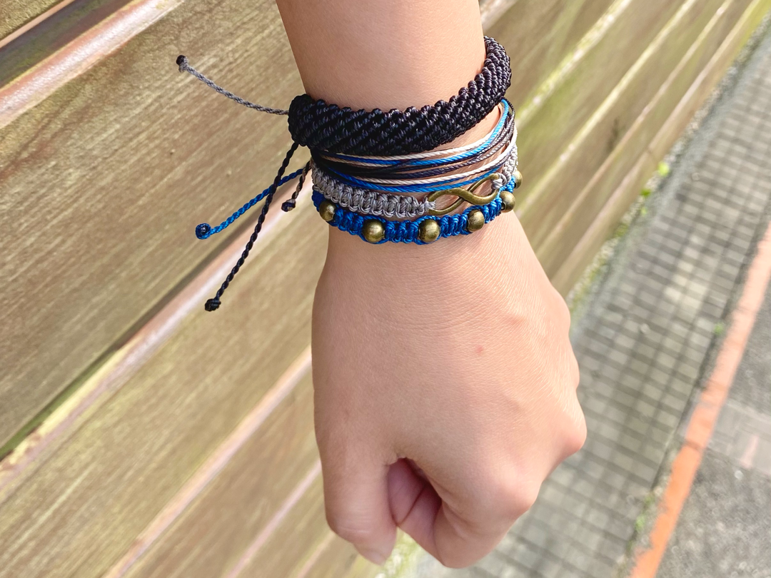 可以自由調整鬆緊度的伸縮結,讓每個人能自行調整手環到最舒適的尺寸,加上好戴好脫的輕鬆隨興,普遍接受度還不錯!
