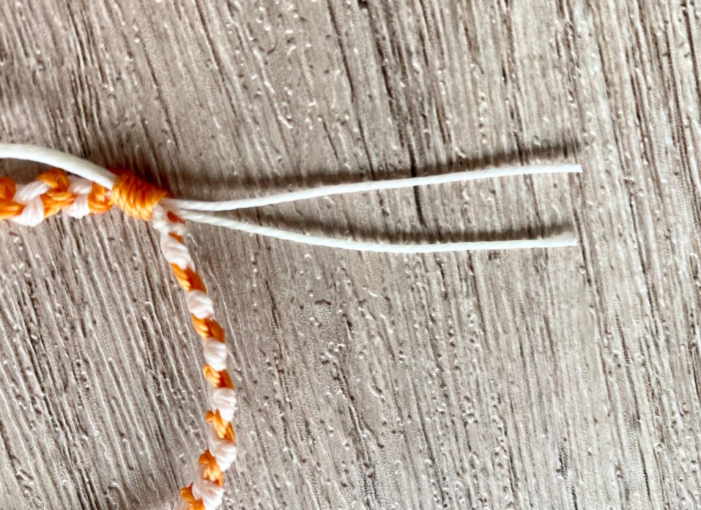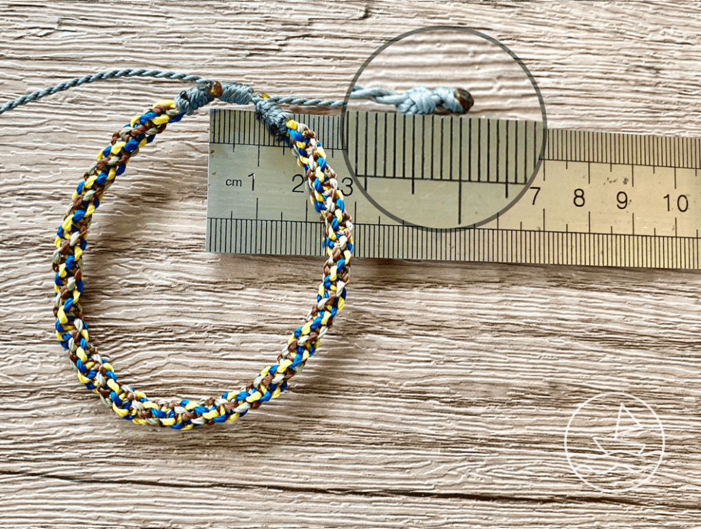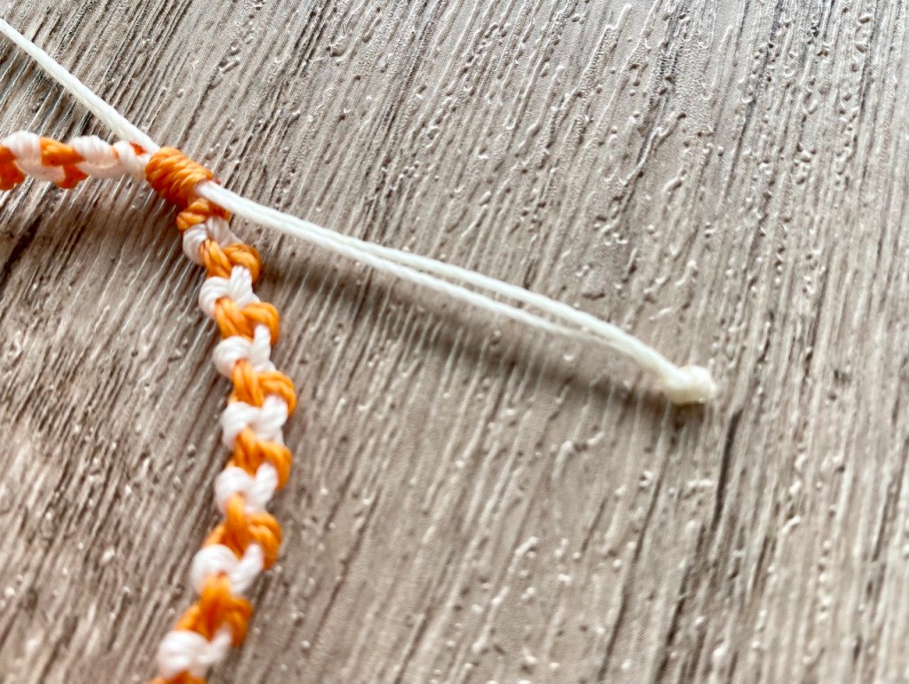 原本約6公分長,在尾部再打一個結,線就縮短了,務必把結拉緊。