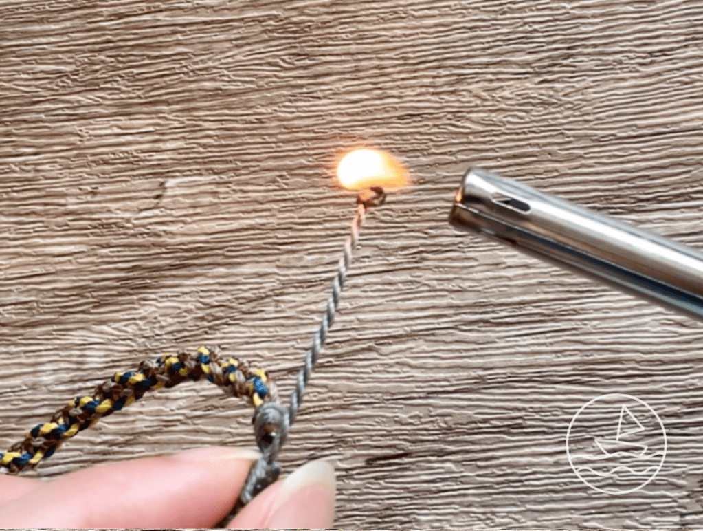 用打火機把第二個結的線尾稍為燒一下,就會像燒蠟燭般凝結收尾。