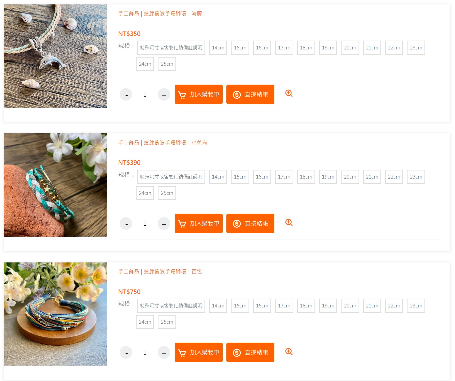 因為平台沒有單一產品頁的概念,所以沒辦法連到官網產品頁對應的購買頁,只能顯示商品列表,要麻煩客人們找一下!例如看中了「海豚」這一款,就得到賣貨便的商品列表中找到它。