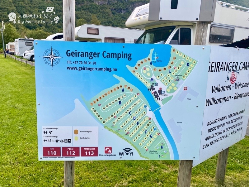 Geiranger Camping的位置是像停車格,井然有序,能容納最多的需求數,但不指定,自己進去找喜歡或剩餘的地點,水邊的位置要加價。