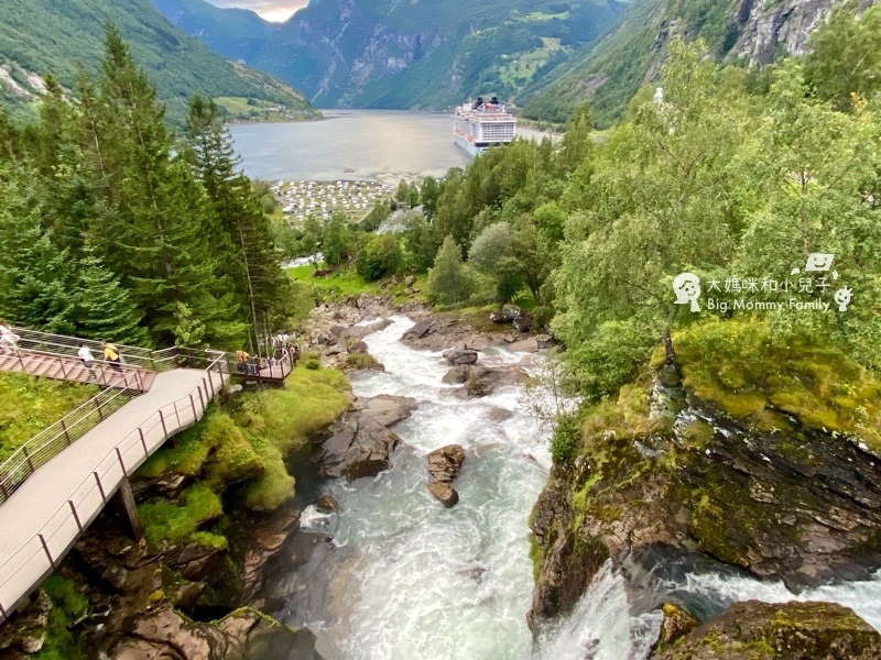 第一眼看到Geiranger蓋朗厄爾,是在山腰上的眺望點,彎彎曲曲的山路突然出現一堆遊覽車,觀景台上擠滿了來自各國的遊客,很容易會因為交通混亂決定錯過,但真的,必須停下來看看!