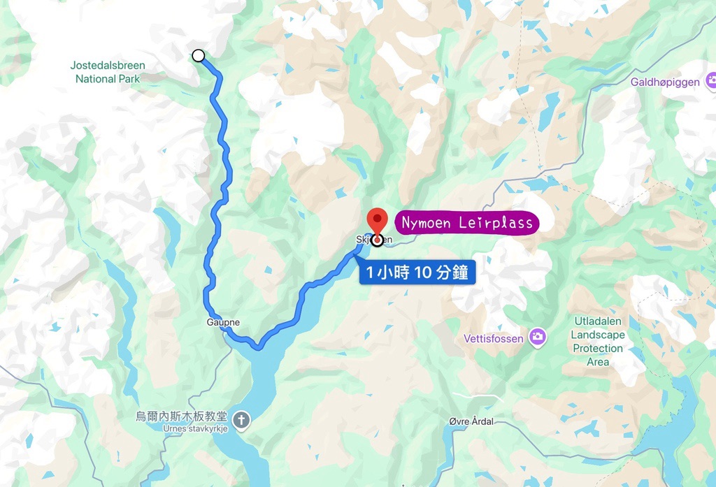 約詩達特冰河健行結束時已接近下午五點,身體沒有預期的疲累,所以決定多往北開一點,並從Google Map上隨機找營地,有過前一天Viki Fjordcamping的Free Style入住經驗,加上旅遊多日的觀察,挪威夏天旺季的人潮不很多,一路上大小營地不算少,應該不會遭遇大客滿必須在外流浪的狀況。