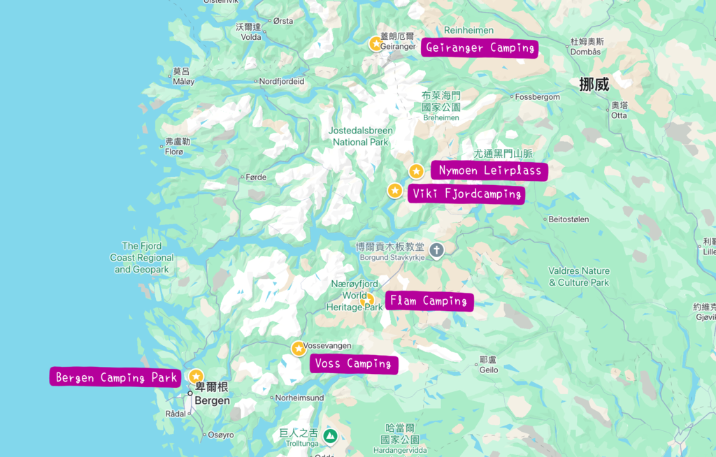 這篇其實想說的是,在挪威開露營車,確實未必需要事先訂好每個營地,因為旅行的範圍太太太廣了,開車的時間往往很長,想去的美麗角落可能隨時出現,不妨大膽地保留彈性,隨機應變吧!不過!Bergen及Voss這種超級大城市的營地,就一定要要先預訂喔!