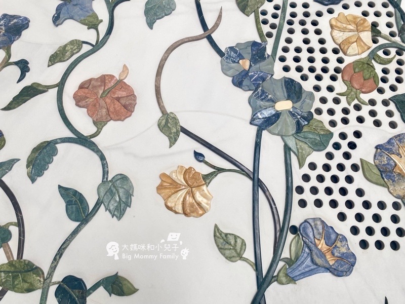 體感超過50度的今天,來到美麗長廊,儘管黑袍底下的我汗如雨下,還是要認真看看這些柱子,能把石材鑲嵌得這麼溫潤美麗,是我很喜歡的質感之一。(漂亮又好打掃啊!)