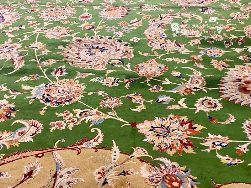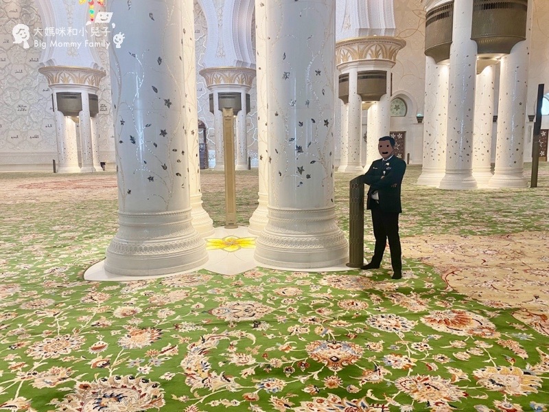 動用大量人力織成的超大地毯,與細緻的白色系雕梁畫棟非常搭,整體是一種極致純淨溫柔的感覺,原來~這些中東人的內心~是這麼浪漫哪!
