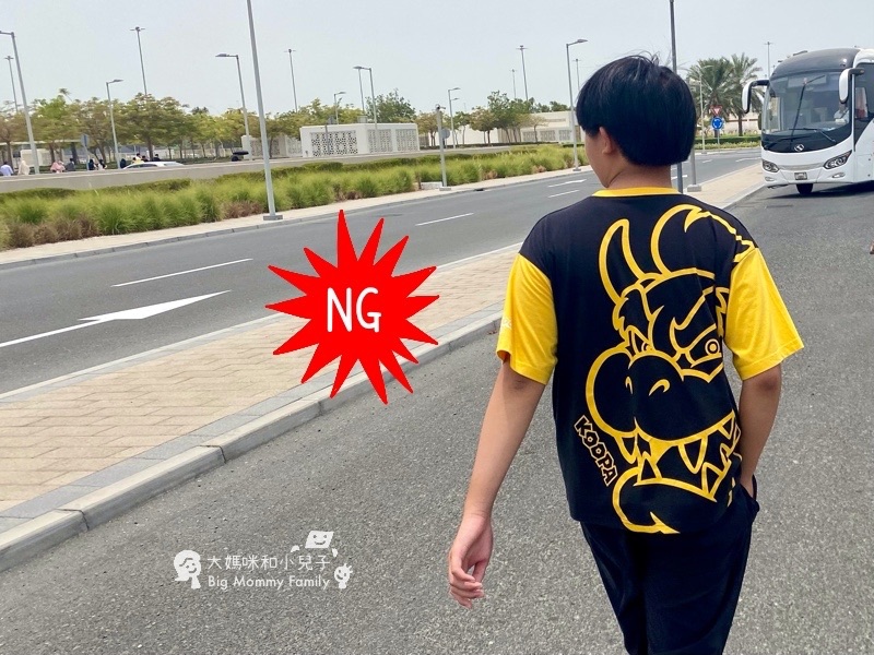 很快地就看到兒子回來了,庫巴T恤被反穿著,感恩大阪環球影城的衣服品質很好,反穿就是一件乾淨不邋遢的純黑T恤,笑死,連同團的老外們都笑了。一路上大家都在注意女性的穿衣規定,結果男生也是有雷區的!