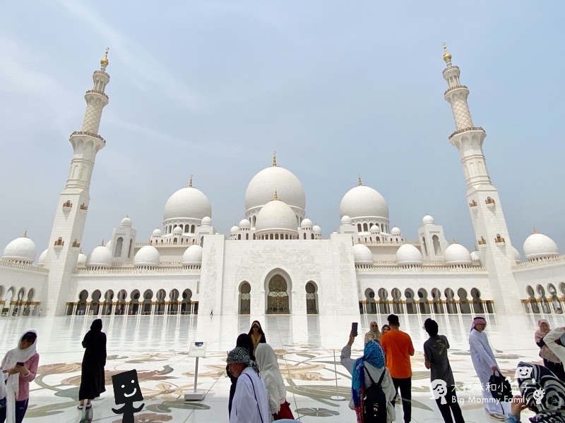 介紹本日景點,是旅行團導遊的必須工作,Sheikh Zayed Grand Mosque 謝赫扎耶德大清真寺,這幾個字我們根本念不出來何況記得住?