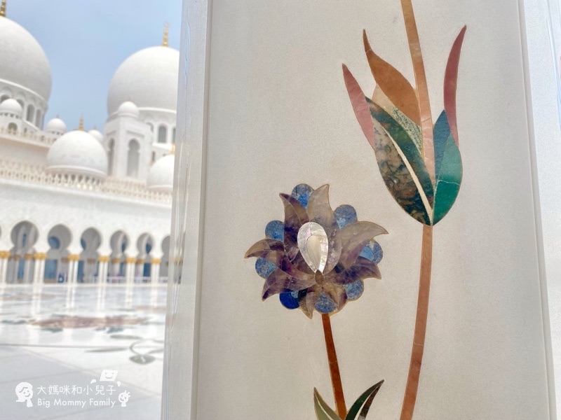 本來以為八成是這一代是產白色大理石,就地取材蓋這座美麗純白清真寺,結果不是!這一代產的是鈔票,各種石材幾乎都是進口的,尤其是義大利,無敵鈔能力真羨慕!