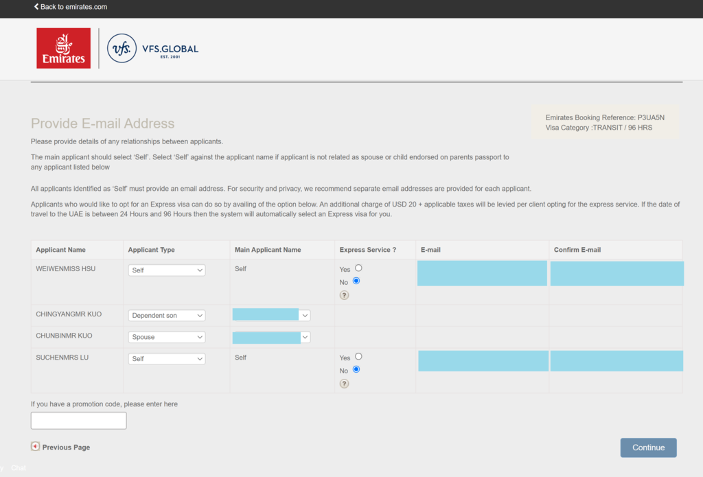 我們這次是一家三口加上外婆,因為是電子簽證,提供email就是首要基本,便利的是,一家三口(夫妻小孩)可以由同一個人的email解決,但外婆(第三等親)就不行了,必須要是另外的email,理論上是要外婆個人的帳號,但外婆沒有email,所以我就使用了我的@gmail小帳,總之是不同的就可以。