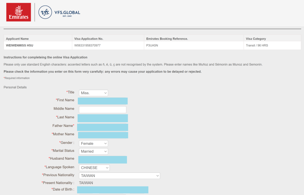 總結來說還算是順利,只是面對這種強權(親中)的中東國家,不免還是會緊張,萬一出了什麼問題,整個旅程就會很麻煩,但這裡就不一步一步翻譯流水表格了,只分享幾個填表過程中的特別印象點,尤其是一人代替全家申請的情境。