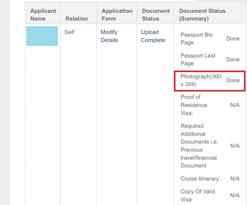 還有一個比較有趣的步驟,就是上傳照片及護照頁,要上傳什麼照片內容都有範例圖,但尺寸限制是很被精準把關的,護照頁要小於200kb,照片要小於40kb,重點是比例必須是300×369,超過就不行,我試了320就失敗,乖乖修回300,表格中會記錄好每個人的每項狀況,通通填好就可以送出了。