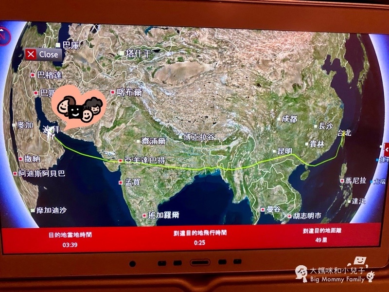 在飛機上特別看一下飛行路線,果然沒有經過戰火不斷的地區,哈!