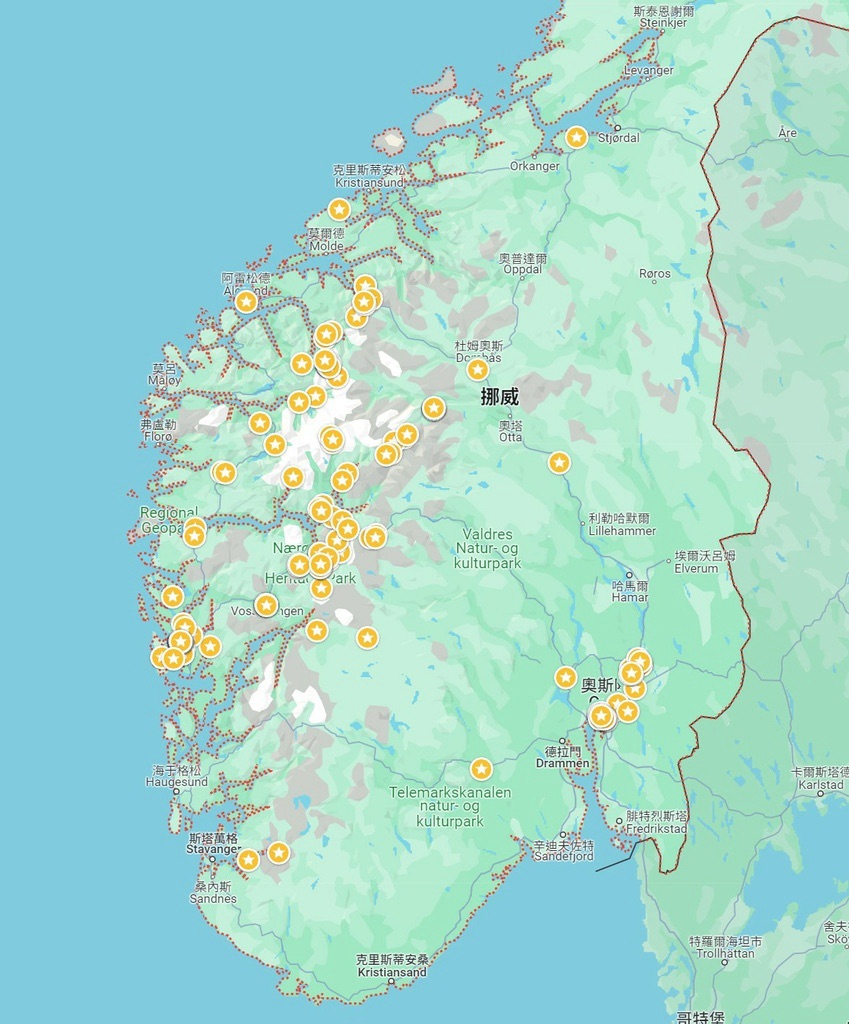 跟之前排紐西蘭行程時一樣,需要非常堅定的斷捨離,挪威國土範圍南北好長,重點城市或景點之間動輒數百公里,一方面不想耗時開車,也不能操翻唯一會開車的臭狗,畢竟阿爸也是要去休息的。再次把大部分的景點盤點並分類為: