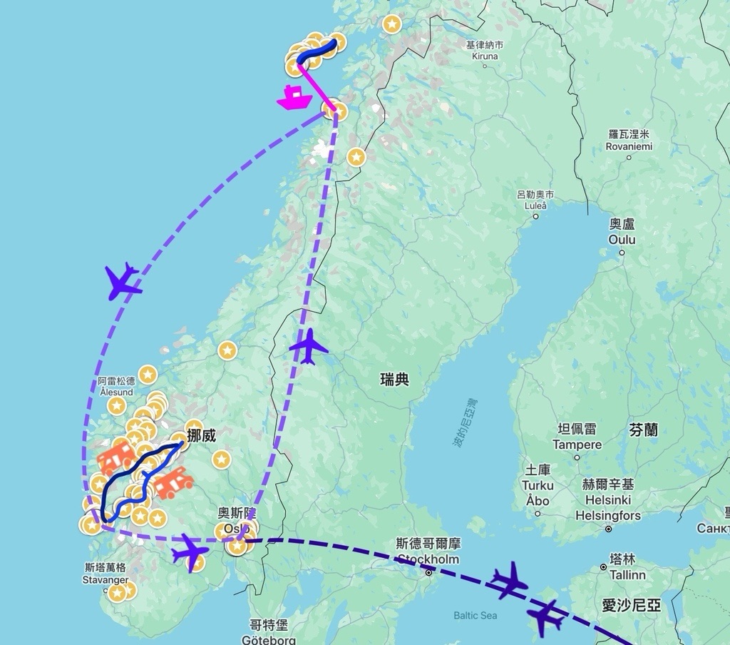 挪威國土範圍好大好長,段捨離之後,決定了這版18天的行程,包含自駕及露營車,還有2天杜拜快閃!