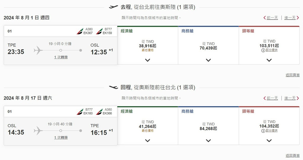 回奧斯陸準備出境,搭乘SAS北歐航空,2024年8月的票價約100歐元。