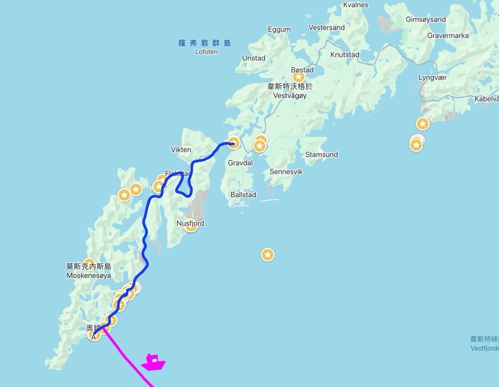 最終出爐的路線地圖如下,上半場是羅浮敦群島,下半場是南方經典景點區。
