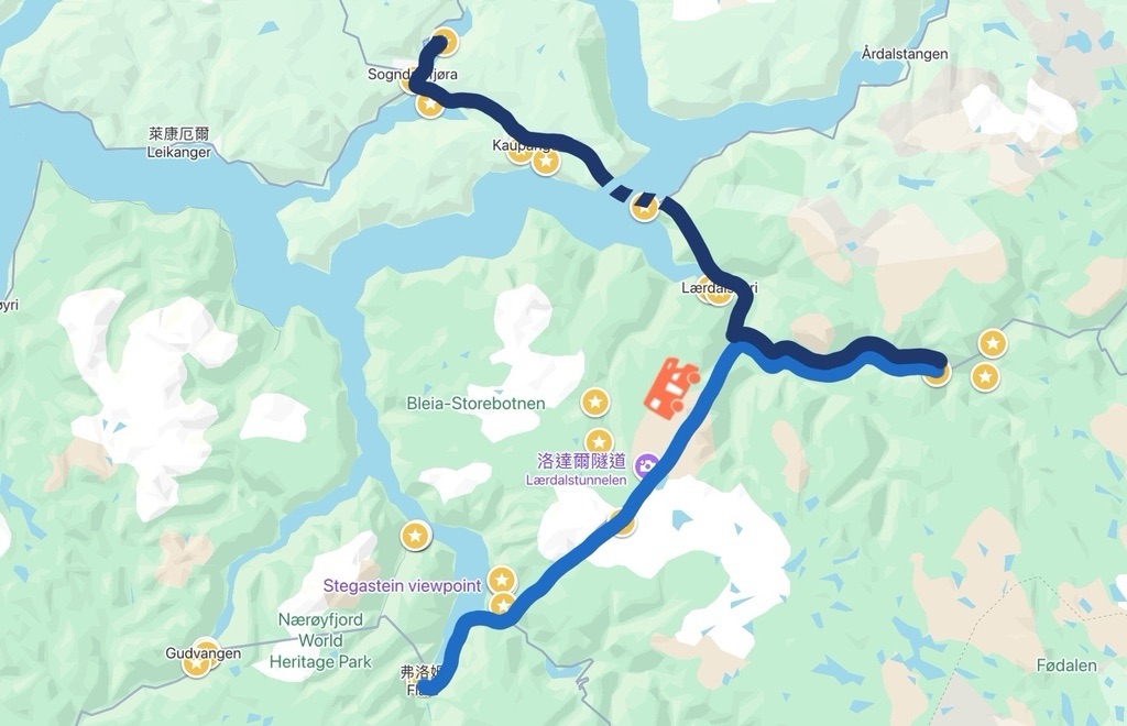因為會先從奧斯陸搭飛機北上去羅浮敦群島,回程同樣搭飛機,當然可以直接到卑爾根,一路北玩上去,雖然還是免不掉枯燥地要往南開一整天回卑爾根,但起碼少了東西向的奔波,總開車時間也少了非常多!於是就決定這個路線了!