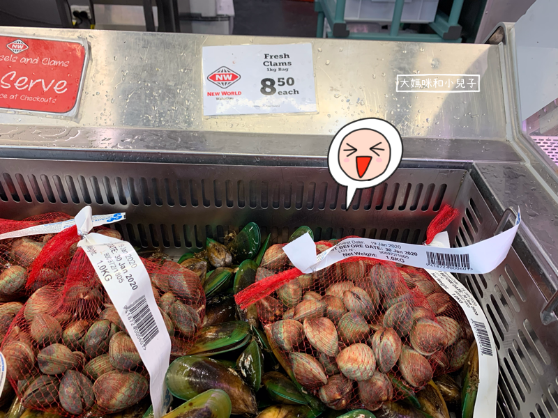 在超市買Mussel淡菜,記得先看看露營車給的鍋具有多大,至少要裝得下這一包,我們的平底鍋很大,所以又加買了一包美味的蛤仔。