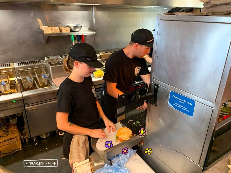 雖然我們差不多是排第5個,但還是等了20分鐘左右,出來玩多半不是一個人,所以每一單都是好幾個現做漢堡,吃這個漢堡真的是要有耐心。
