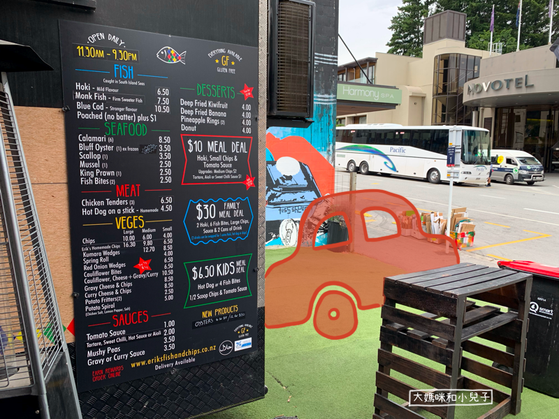 第一次就獻給了皇后鎮的這家Erik’s Fish & Chips,就在NOVOTEL對面,Google Map及TripAdvisor上的分數不錯,只要在這裡用餐,就可以暫時把車停在門口的空位裡。
