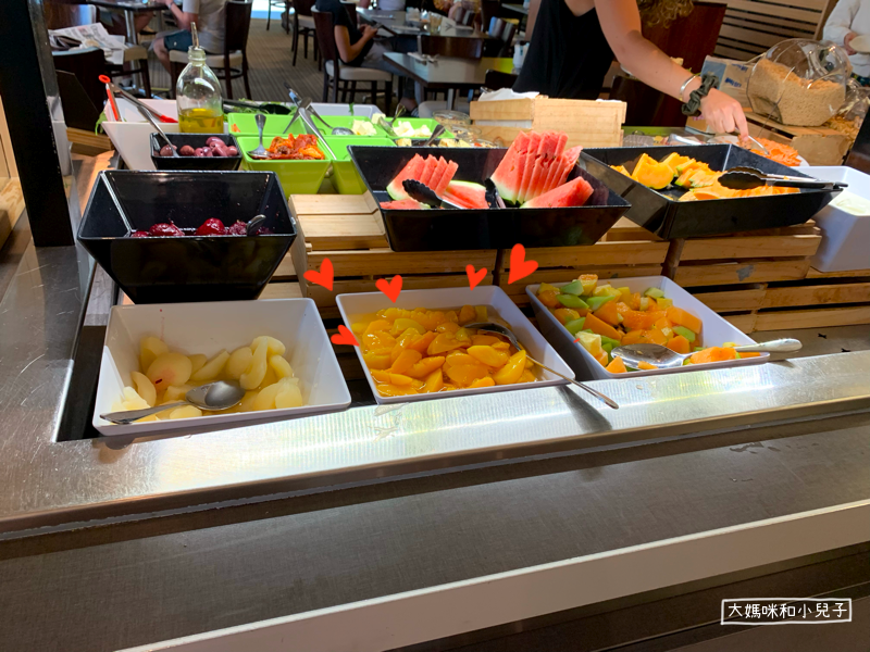 Buffet的食物不外乎是麵包、培根、香腸、生菜沙拉、水果、現做歐姆蛋等,品質都很好,不是充數的劣質貨,在綠綠的窗邊享受輕鬆的早晨,洗滌去旅人一身疲累。