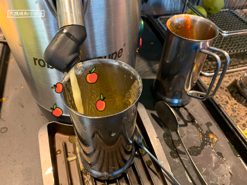 類似慢磨機或調理機,按照圖表上的可以或不可以,自己現切水果下去榨汁,新鮮蘋果汁搭什麼都好好喝!