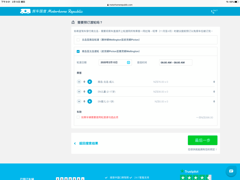 最後也可以順便訂購南島到北島的渡輪,可以一併指定好日期與時間搞定,這次無緣去到北島,等我哪天發達了能重遊紐西蘭,再跟各位繼續分享。