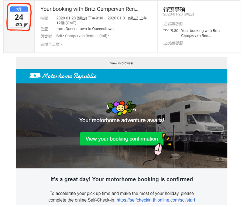 這封就確認預定成功了,通常會有幾件事要做: