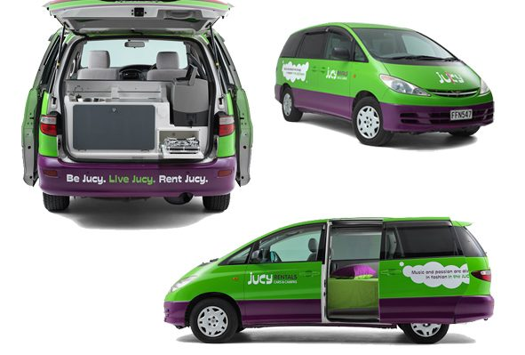 業配得很兇的Jucy,在網路上的旅遊分享文不少,主打的Campervan看起來就是很輕巧適合到處鑽、到處去,後車箱有冰箱、馬桶、小廚房,椅子打平可以睡覺,還有很多置物空間,通通塞在一台休旅車裡面,真的是…..好克難啊!哈哈!