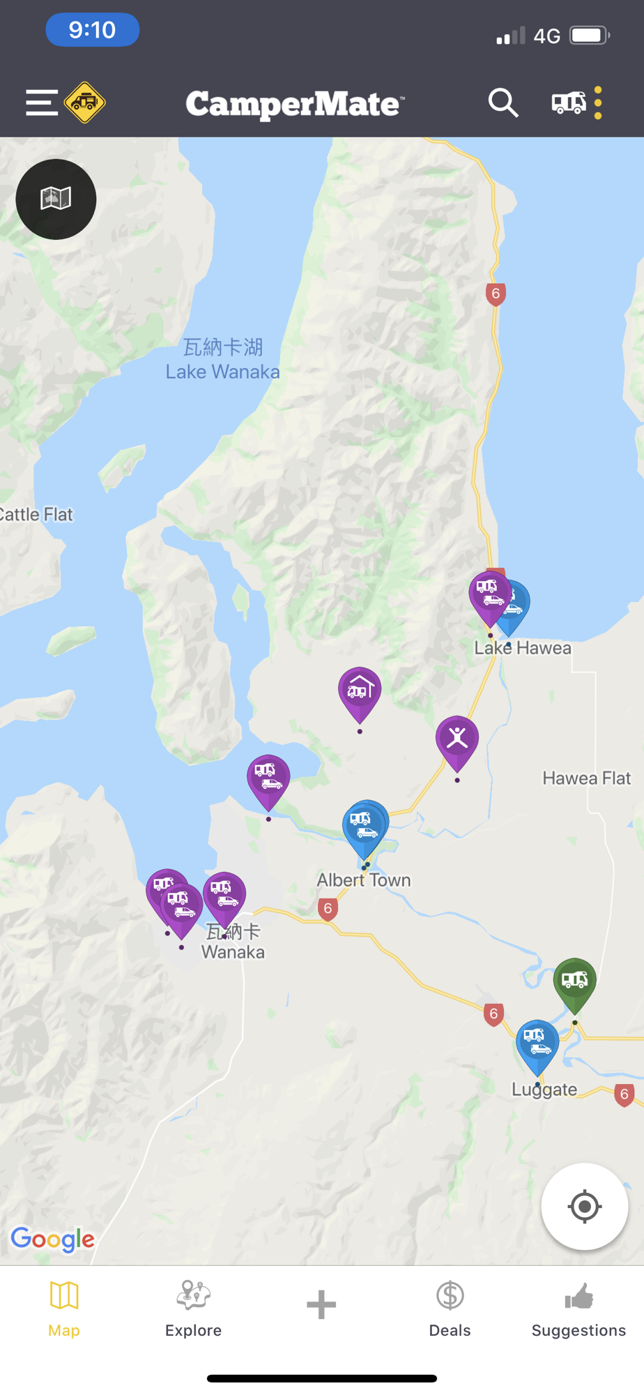 註:Jucy這種車不算是self-contained,所以用App找營地要找不自帶廁所的。