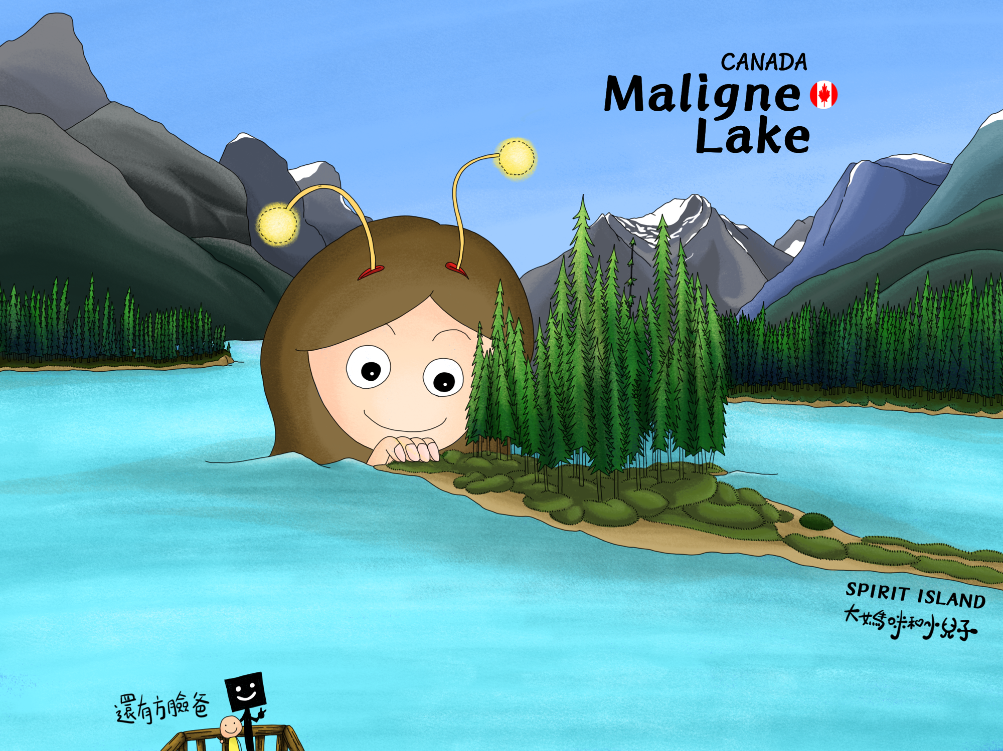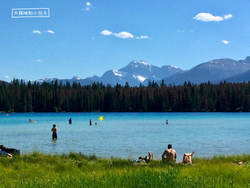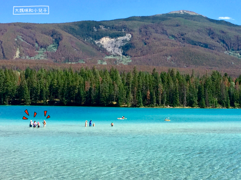 Maligne Lake瑪琳湖的精靈島觀光船行程,超美!尤其是回過來整理照片時,真是巔峰!接著發現Japser的湖泊大部分不是拿來看,而是拿來玩的!所以決定不再開來開去看美景,停下露營車,換上泳衣,下到一座怎麼走水深都只到腰部的美麗湖泊,實在是太好玩了。
