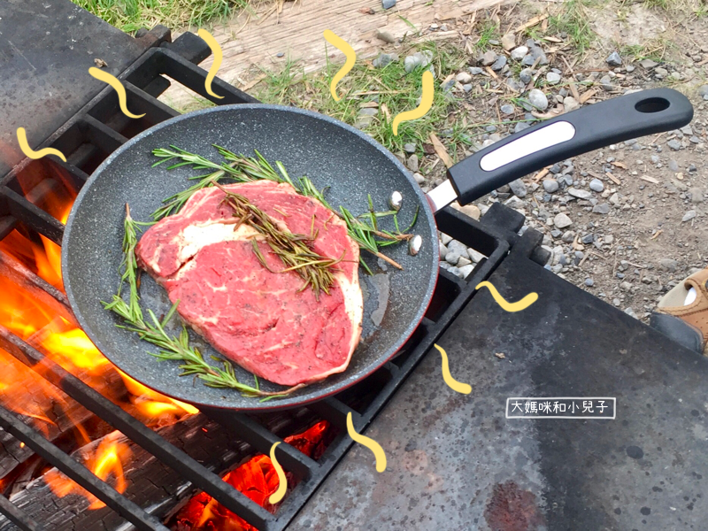 因為我們家有燃燒魂,所以幾乎所有營地都預訂了焚火台(Fire Pit),忘記在超市買一把小平底鍋,所以在第一個晚上就豁達地把租車公司給的小平底鍋燒了!