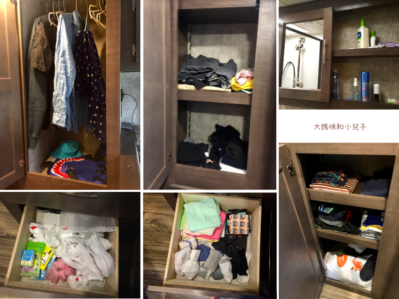 儲物空間完全沒問題,抽屜格子很多,有分類強迫症的媽媽應該也能滿意,就連出發前我最困惑的行李相空間也綽綽有餘,從車外開的行李空間大大小小好幾個,硬要放4咖24吋大箱應該也是行的,早知道我就多帶一咖去血拼用。