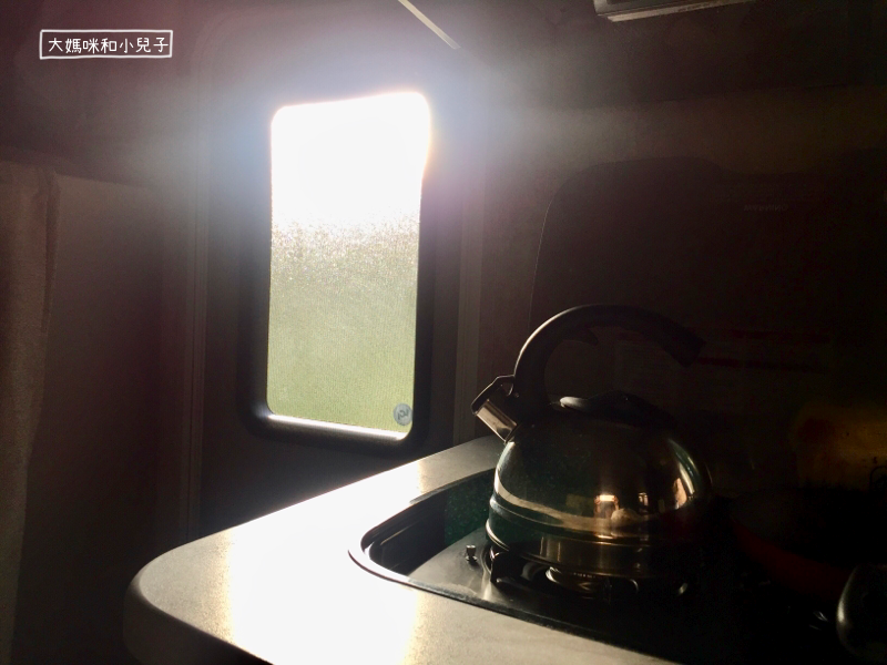 至於瓦斯就更沒問題了!基本上就是塞入一罐小號桶裝瓦斯,剛開始不太敢用太兇,後來根本用熱水洗碗,不折磨自己的手去戰超冰的水,就像租車公司說的:「絕對沒問題!」。