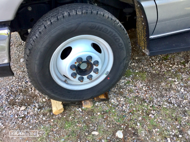 於是忙於將「手工木板」墊在該輪胎底下,順便機會教育小人什麼叫水平儀,車上有附一個,只能說,有個力於追求完美的男人,家庭真的或舒適幸福一點呦!各位爸爸請加油!