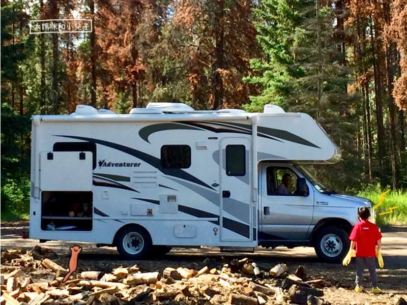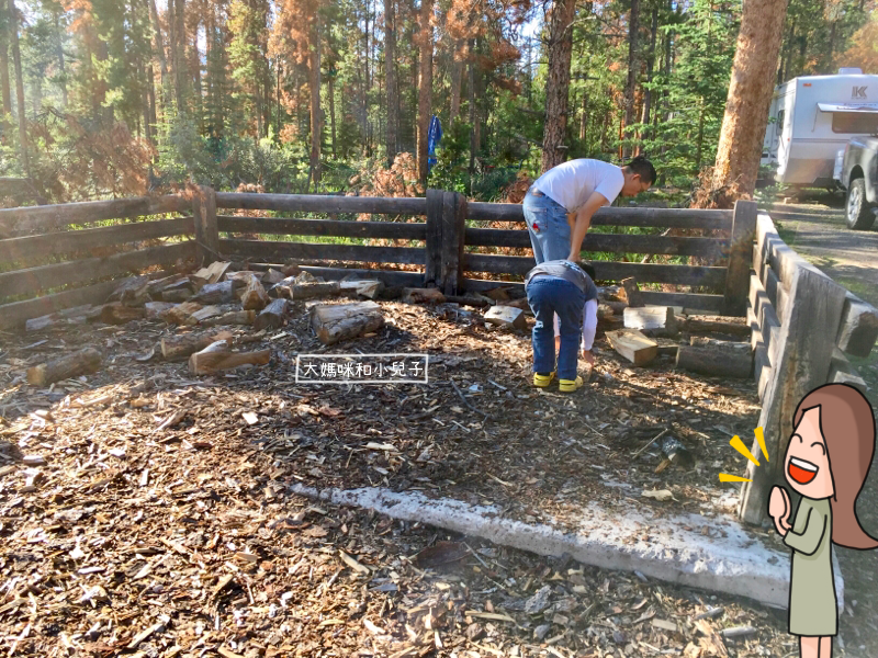 我們在Whistler要住兩天,大客滿所以兩天的位置不一樣,第二天的木柴場沒有小動物陪伴,但好大!不愧是超熱門營地,新鮮木頭的質感真是漂亮!