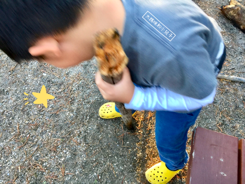 相對原始的環境,小人在腹地中玩得很開心,臭狗老爸也很爽地享受大自然,阿母我則是終於在掌握露營車使用節奏後,得以加入悠哉悠哉的行列。