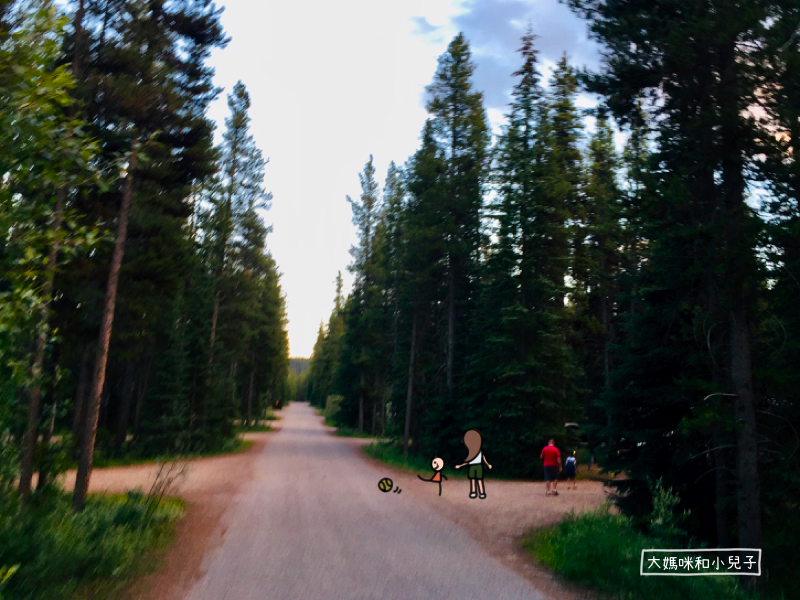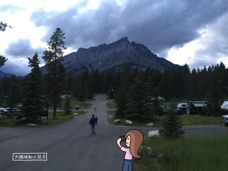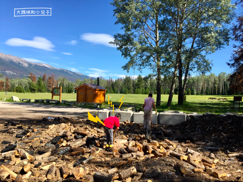 進營地的第一件事就是找木柴場,因為車子停好就不想動了,所以偏好一進來就搞定火跟水,營地對面就是漂亮的Tunnel Mountain山,大概要非常早鳥,才有辦法在夏季搶到能看到山景的營位吧!木柴場的View超好,一群外國小孩正在打棒球,好幸福哪!