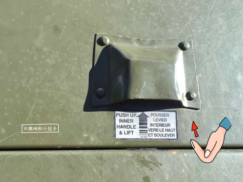 往上開的防熊垃圾桶,不難,確實是熊打不開的靈長類設計,蠻有趣的!