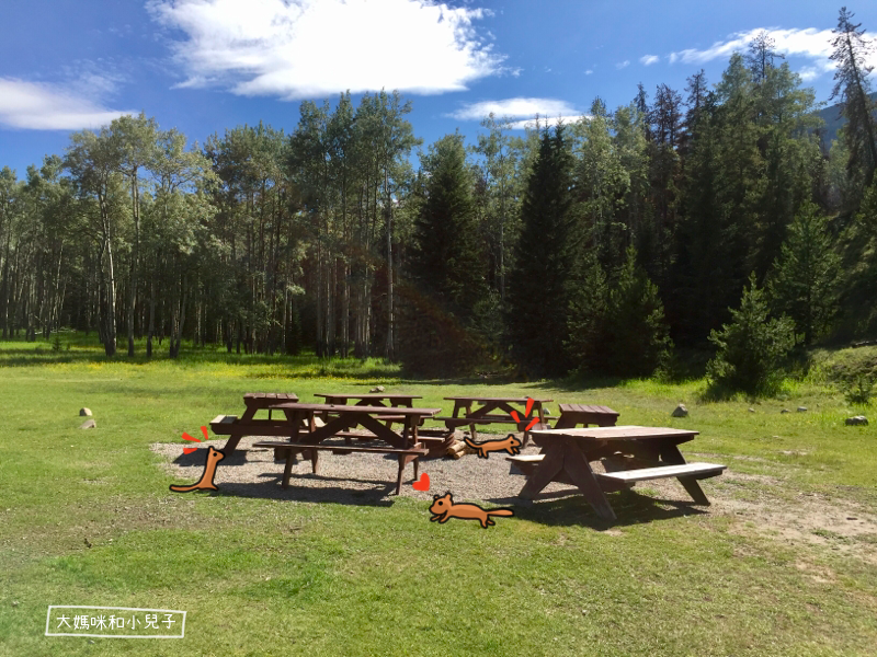Tunnel Mountain Village II的營地設計,像是一個充滿巷弄的大空地,把車子停在路邊的感覺,然後有一套自己的木桌椅及焚火台,個人隱私在官網上描述雖然是不好,但跟台灣根本可以跟隔壁握手的距離比超級好多了!