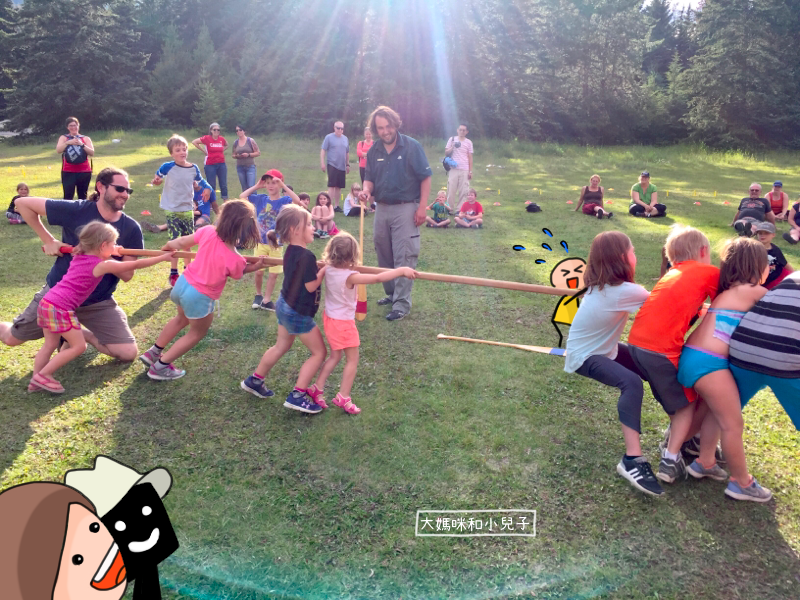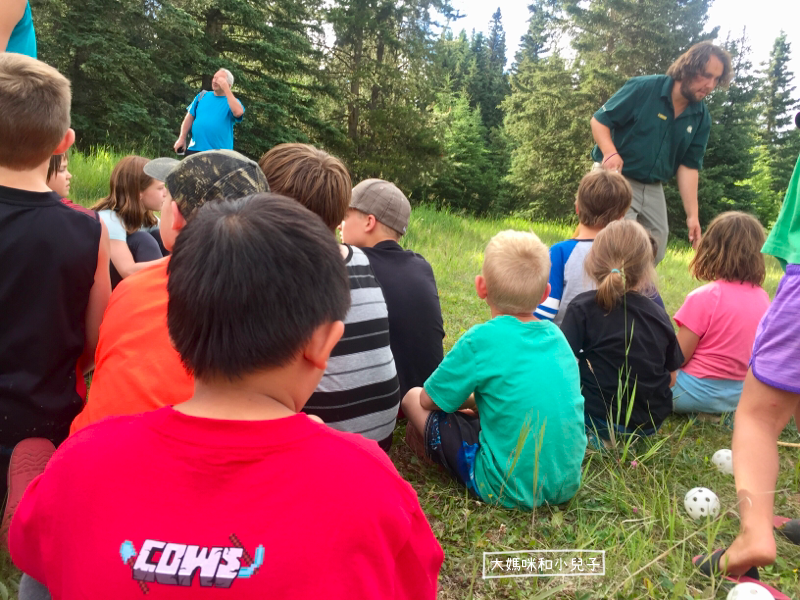活動的主題是以山林為背景,藉由探討從前獵人打獵的各種技巧,延伸帶出四種團體遊戲及動物介紹,全場只有我們一家是東方人,其他都是歐美人,孩子們其實未必全都聽得懂英文,但如同我們家小人一樣,心中莫名有一股「我就是想玩想參加」的熱血!