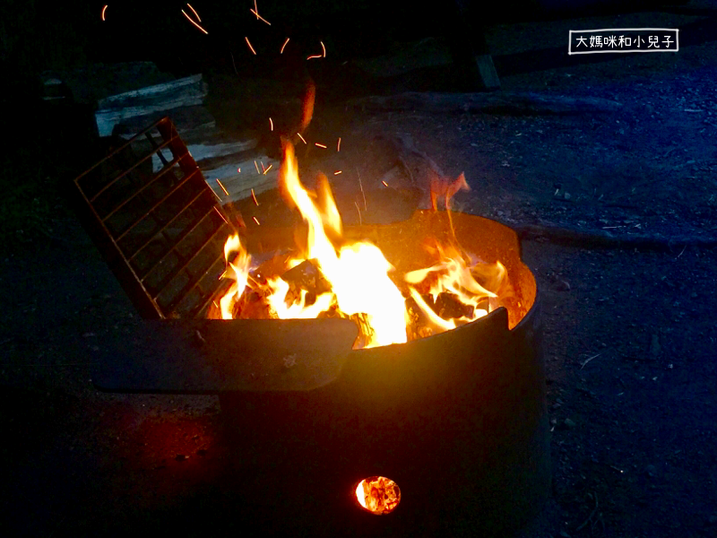 注意!別忘了,人是不可以離開火堆的,就算是全待在車上也不行,我們第一晚就被敲門說不可讓火自然熄滅,必須人為撲滅,發生森林火災的風險一點都不能冒!(糗)