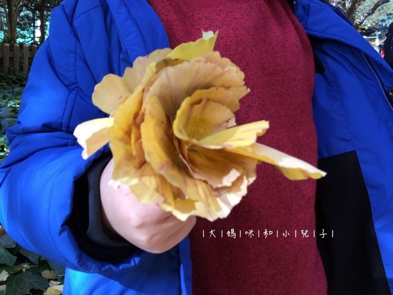 無緣,繼續一邊玩一邊走囉!為了吸引小人仔細觀察銀杏,就請做一朵花花給媽咪吧!