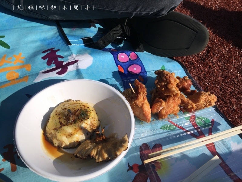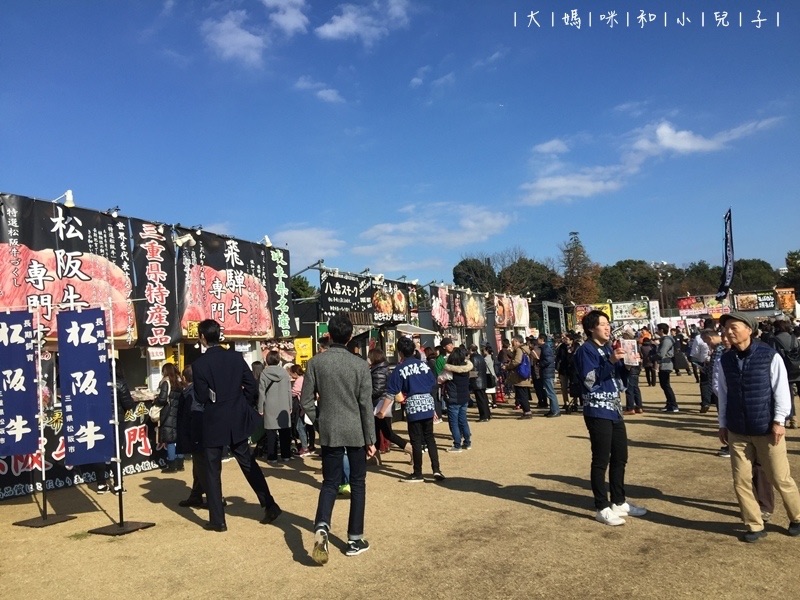 美食攤位很多,雞、豬、魚、牛、拉麵、壽司、炒麵、薯條,幾乎想得到的日本食物通通都有,價位差不多就是把日幣一千元當台幣一百元在逛夜市的感覺(淚)。