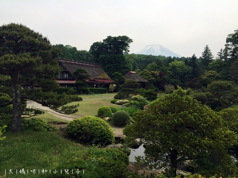 小小的忍野八海,即使像我們這麼晃蕩吃食,兩個小時也差不多足夠了,最後賞一眼日式庭園+富士山,要回新的旅館Check in啦!
