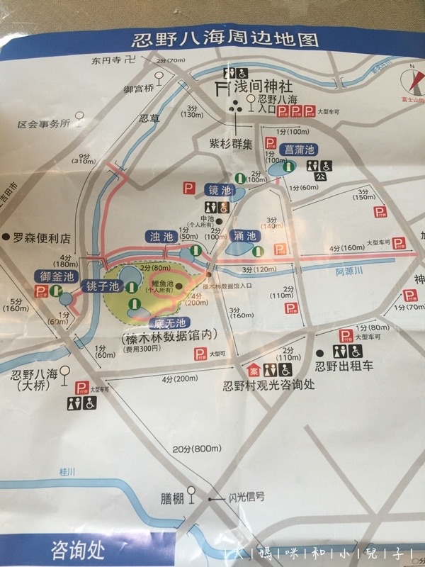 然後巴士當然要選有停「忍野八海」的班車,最好不要在「忍野入口」下車,雖然整區不太大,但人生地不熟,在「忍野八海」下車一路指標較順,也會遇到遊客中心,會走得比較符合預期。需要更多資訊就到富士急行巴士官網看看吧!