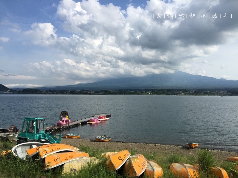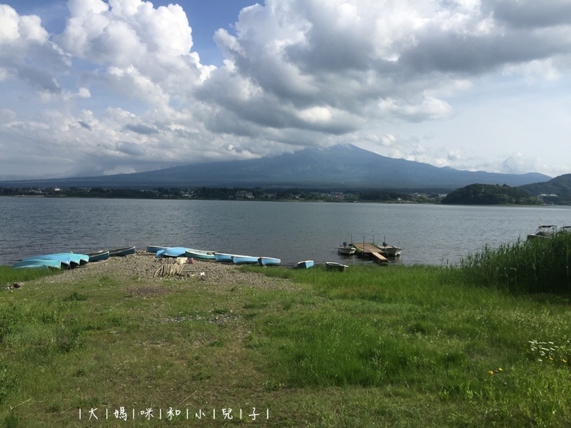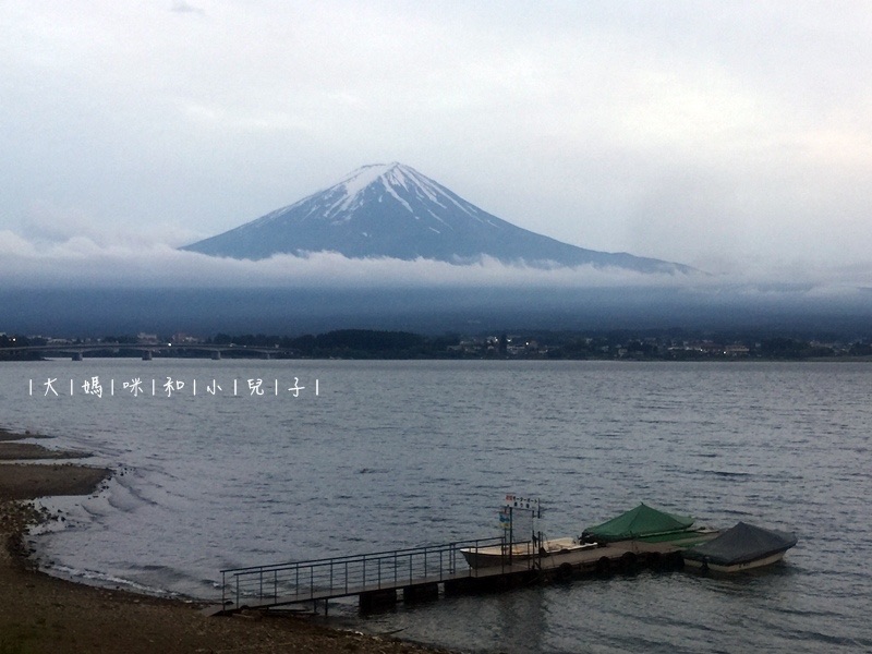 快到旅館的時候,臭狗突然攝影魂大發往湖邊衝去,我則是帶著大家往旅館走,雖然沒能拍到夕陽,但滾滾湖水上的富士山,還是很威。